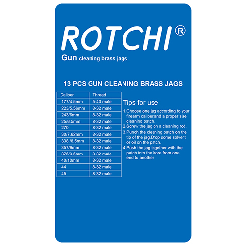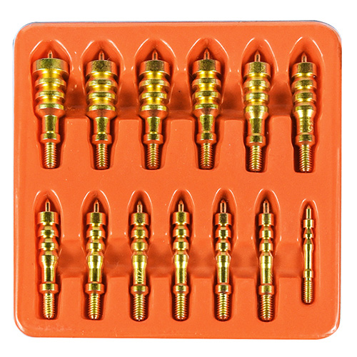 13'lü paket tabanca temizleme pirinç çentikleri set, kabarcıklı kart paketi, boyutlar: 0,177, 0,22, 6 mm, 0,25, 0,27, 0,30, 0,338, 0,35, 0,357, 0,40, 0,44, 0,45, 0,50cal.