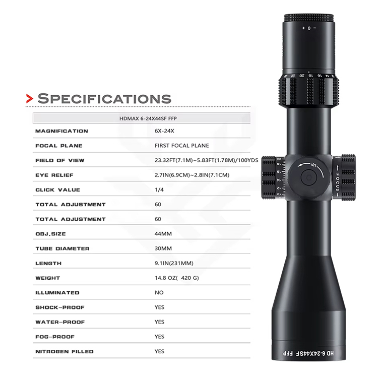 HD MAX 6-24X44 SF FFP HD Yüksek Lens Avcılık Monoküler Teleskop Toptan