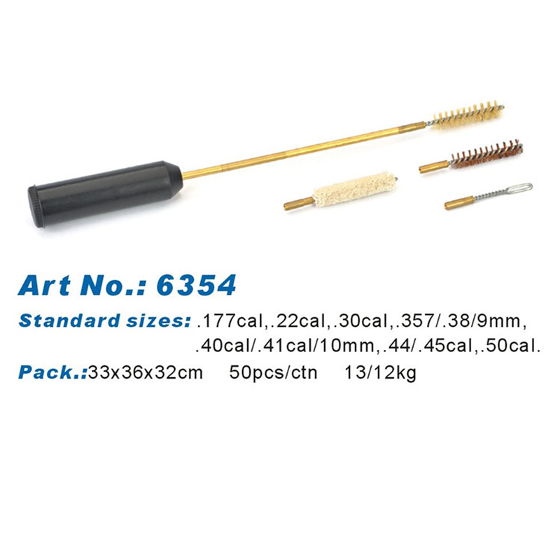 Pirinç fırça, pamuklu paspas, naylon fırça, oluklu yama tutucusu, 2 adet pirinç çubuk içeren içi boş saplı tabanca temizleme seti. Kullanılmadığı takdirde tüm bileşenler İçi Boş tutamağa yerleştirilebilir. Bu yüzden tabanca/tabanca temizliği için çok küçük ve kullanışlı bir temizleme aracıdır.