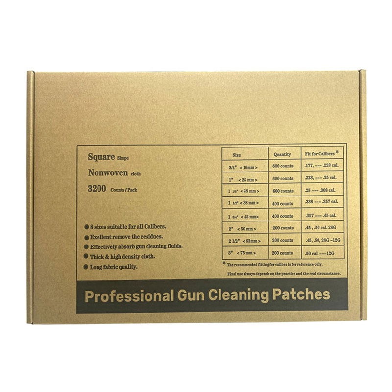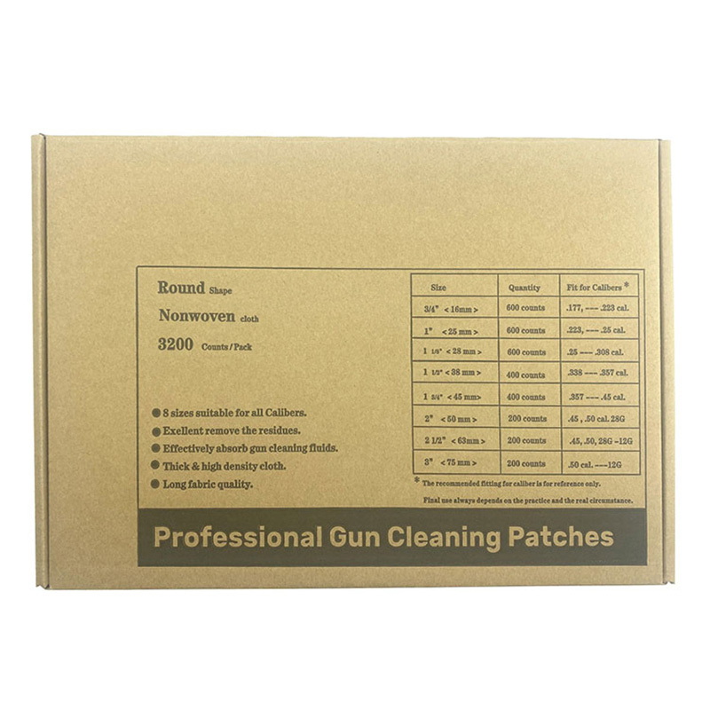 Evrensel Beyaz Pamuklu Bez Yuvarlak Tabanca Temizleme Yamaları Blister Kutu 8 Boyutları, 3540 Sayım ● 【Hepsi Bir Arada Kombo Paketi】8 boyutlu temizleme yamaları 0,177cal'den başlayan tüm kalibreli ateşli silahlara sığabilir. Av Tüfeği 12G'ye; Farklı kalibreli ateşli silahlarınız için farklı boyutlar satın alarak paranızdan ve zamanınızdan tasarruf edin; ● [Yüksek emiciliğe sahip pamuklu malzeme] Yüksek oranda emilen bu dokuma olmayan kumaş. Geri kalan sıvıları hızlı bir şekilde emer, delik yüzeyindeki kalıntıları ve pası temizler. ● 【Kalın malzeme】Kalın dokumasız kumaş yüzeyi, temiz performansı oldukça güçlendirir. ● 【Bir tepsideki her boyut 8 boyutu 8 tepsiye paketliyoruz. Ve her tepsinin boyutu tepsinin yanında yazılıdır. Paketten doğru boyutu bulmak ve almak kolaydır. ● [OEM]Müşteri Logosu kabul edilebilir.